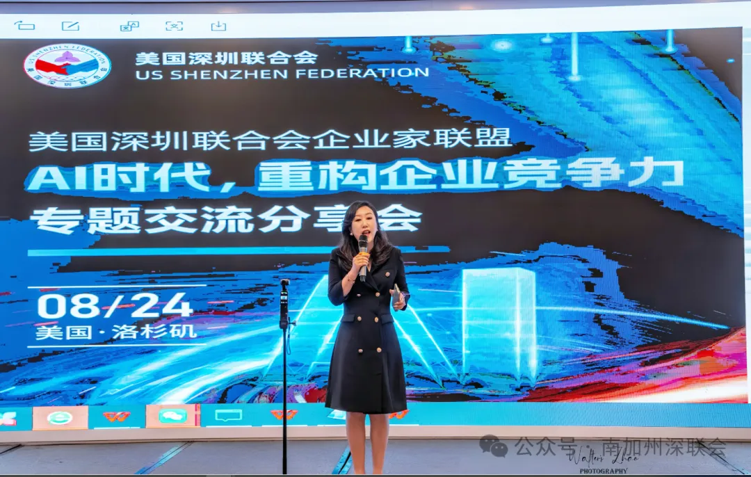 美国深圳联合会叶冬会长表示,当前AI技术正以前所未有的速度渗透各行各业,既是全球企业共同面临的挑战,更是中国出海企业与在美华人企业家实现弯道超车的关键机遇。作为连接中美商界的桥梁,美国深圳联合会始终致力于为在美深圳籍及华人企业家搭建资源共享、经验互通的平台,此次专题分享会正是联盟响应行业需求、助力企业应对技术变革的重要实践。她希望参会者能通过专家分享与跨界交流,将AI思维融入企业战略布局,在全球化浪潮中抢占发展先机。随后,多位行业专家结合自身领域实践,围绕企业在AI时代的核心需求与挑战展开深度分享。